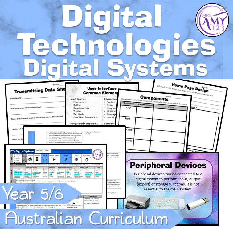 This comprehensive 10-lesson Digital Technologies unit (designed for a full 10-week term) empowers students to explore the core components of digital systems, including user interfaces and networks that transmit data, while aligning with Version 9.0 of the Australian Curriculum. Perfect for Year 5/6 teachers, this unit blends explicit teaching, hands-on design tasks and collaborative learning to build deep understanding of how digital systems work in the real world.