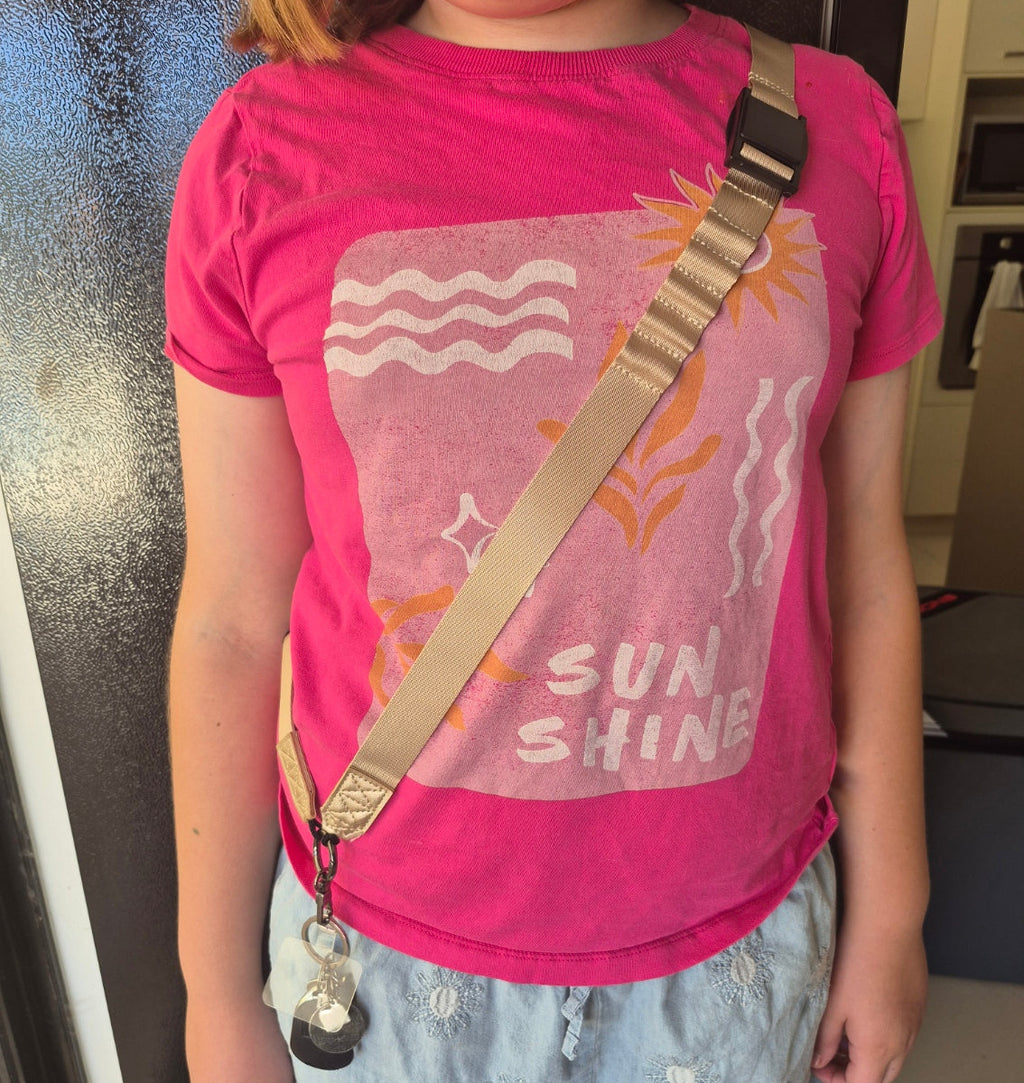 - Secure and accessible storage for keys, phone, visuals, fidgets, ID cards, and more