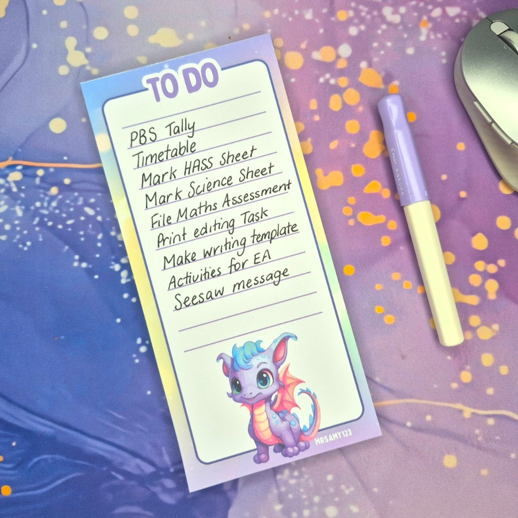 Let your ideas hatch in style with this A5 notepad from The Hatchery Collection. Featuring a soft pastel sparkle background and two lovable dragon companions, this pad is perfect for jotting down notes, doodles, or daily thoughts. Whether you're in the classroom, at your desk, or on the go, each page brings a little joy to your scribbles.