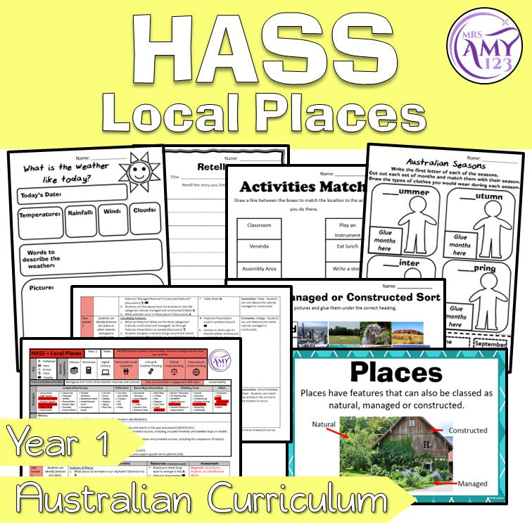 This Australian Curriculum aligned Year 1 HASS unit on natural, managed and constructed features of places is a complete 9-lesson program designed to save you hours of planning while delivering engaging, purposeful learning. Students explore natural, managed and constructed features, identify where they are located, and develop an understanding of how places change and can be cared for.
