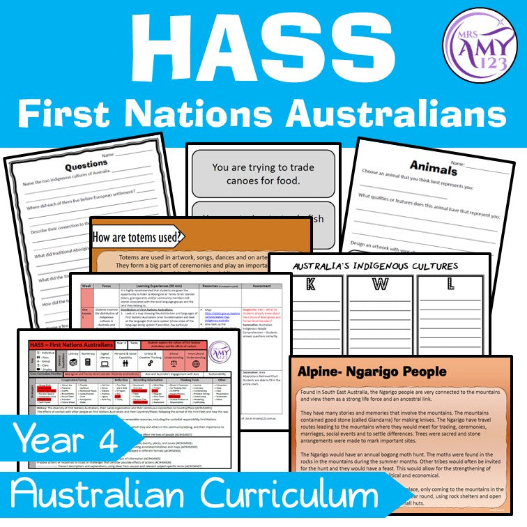 True to the Mrs Amy123 style, lessons are interactive, thoughtful and engaging. Students explore First Nations cultures and histories through: