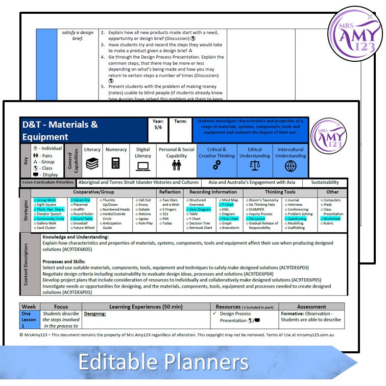 ✩ The editable planner includes relevant Australian Curriculum links.