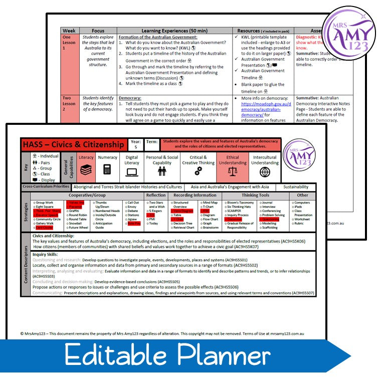 A WA Curriculum version of the planner is also included which features an additional lesson.